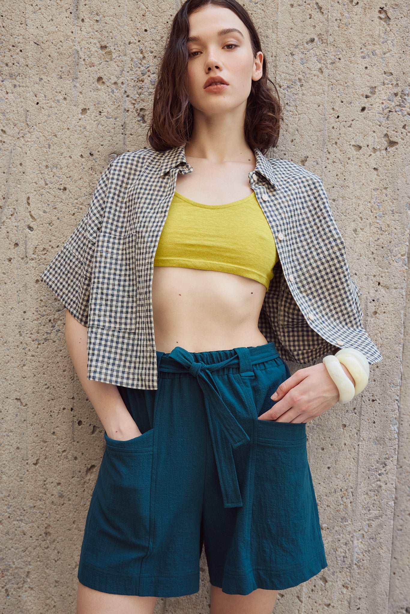 Alliez style et bien-être avec ce short droit en coton embellie par ses larges ganses et sa ceinture assorties à la taille qui assurent un ajustement parfait et une touche raffinée. Dispose de deux poches latérales et deux poches plaquée dos.