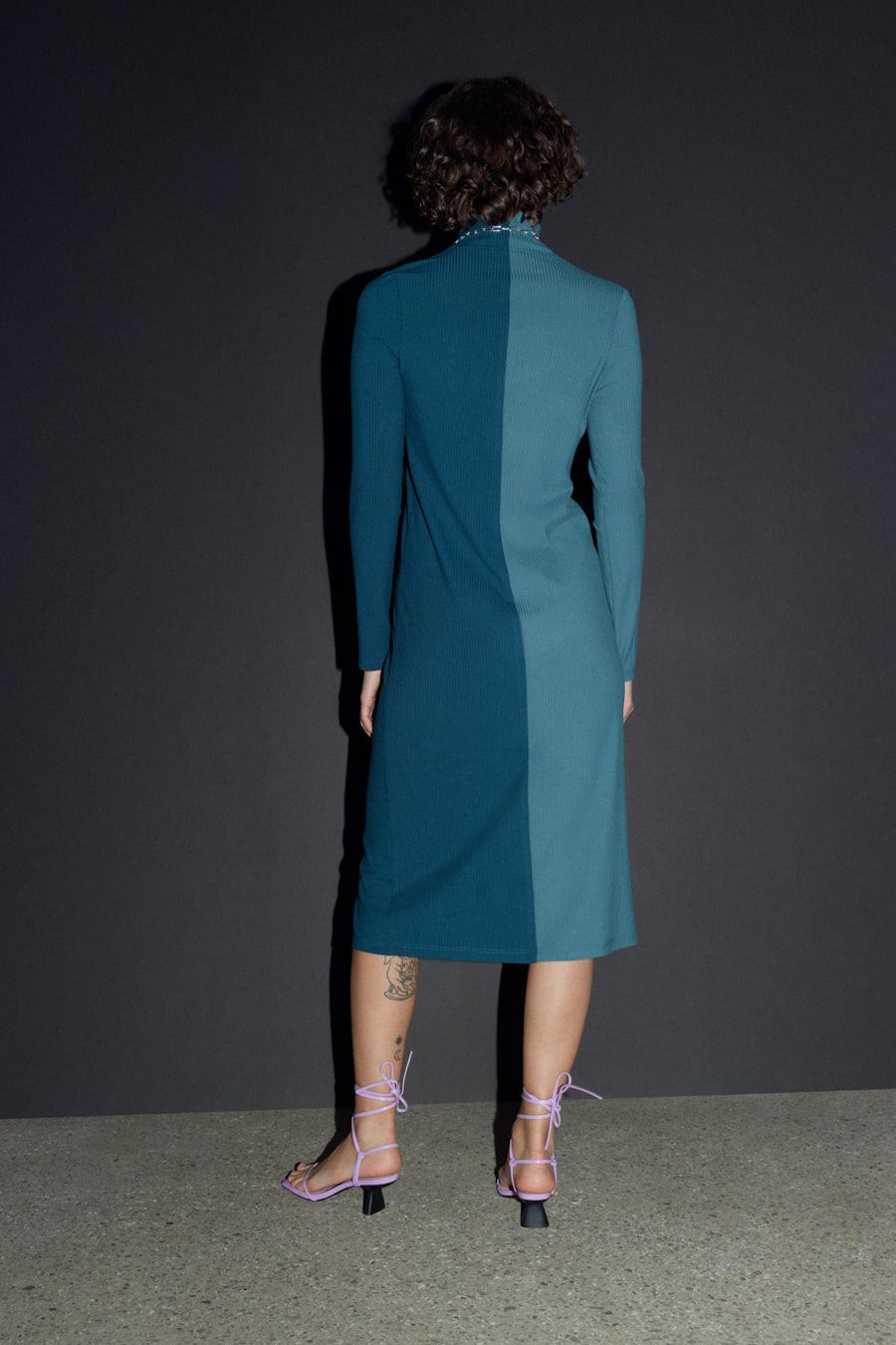 Long dress with a high neck and a front slit for a relaxed walk. Ultimately comfortable, it's your must-have for going from cozy at home to fancy for your evening.