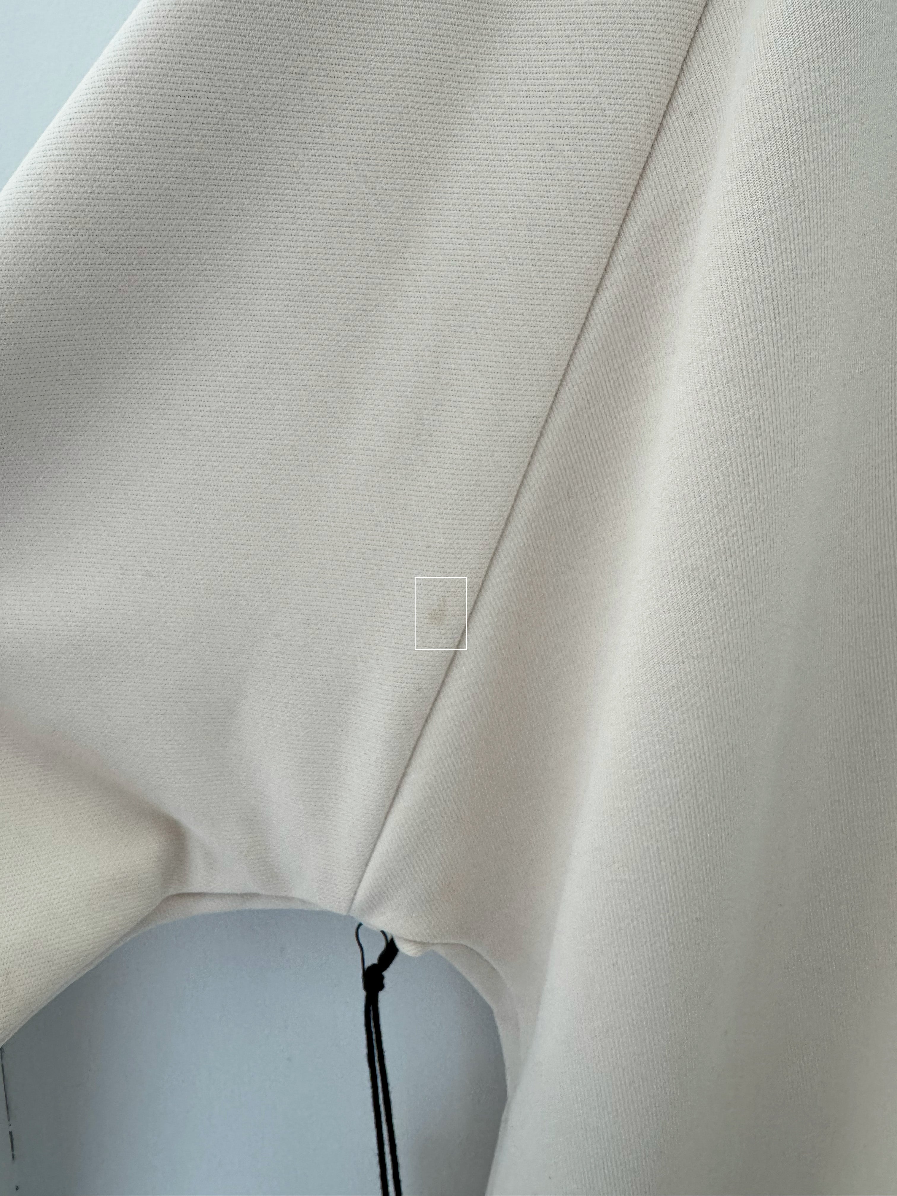 Defect: Stain on left sleeve back.