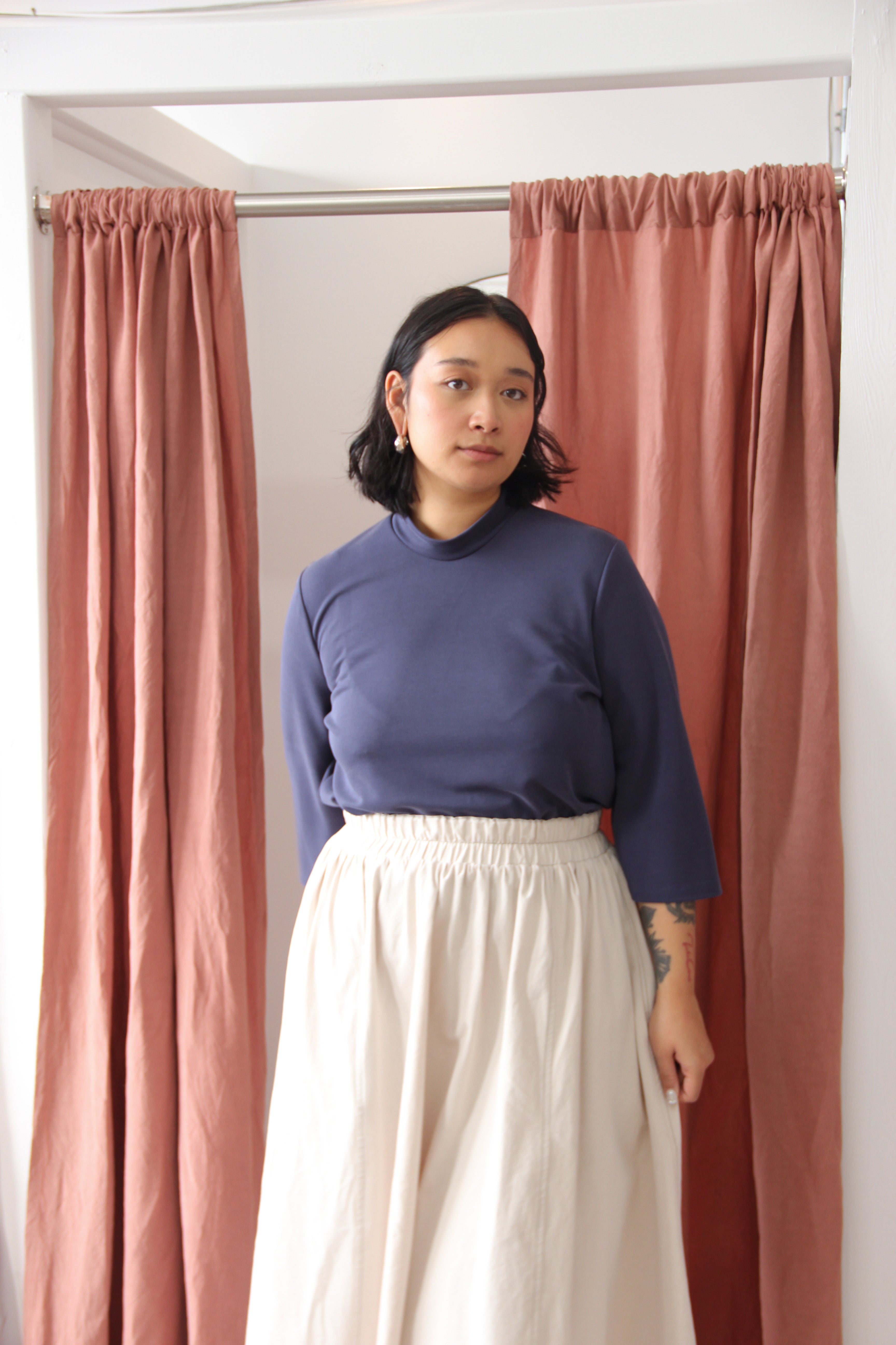 Haut à manches 3/4 amples et col légèrement montant conçu dans un tissu d'une qualité inégalée au velours doux et incomparable. Si tu cherches un basique plus épais et raffiné que nos modèles habituels celui-ci est fait pour toi. Il allie confort et élégance parfait pour apporter une touche de sophistication à ton quotidien.