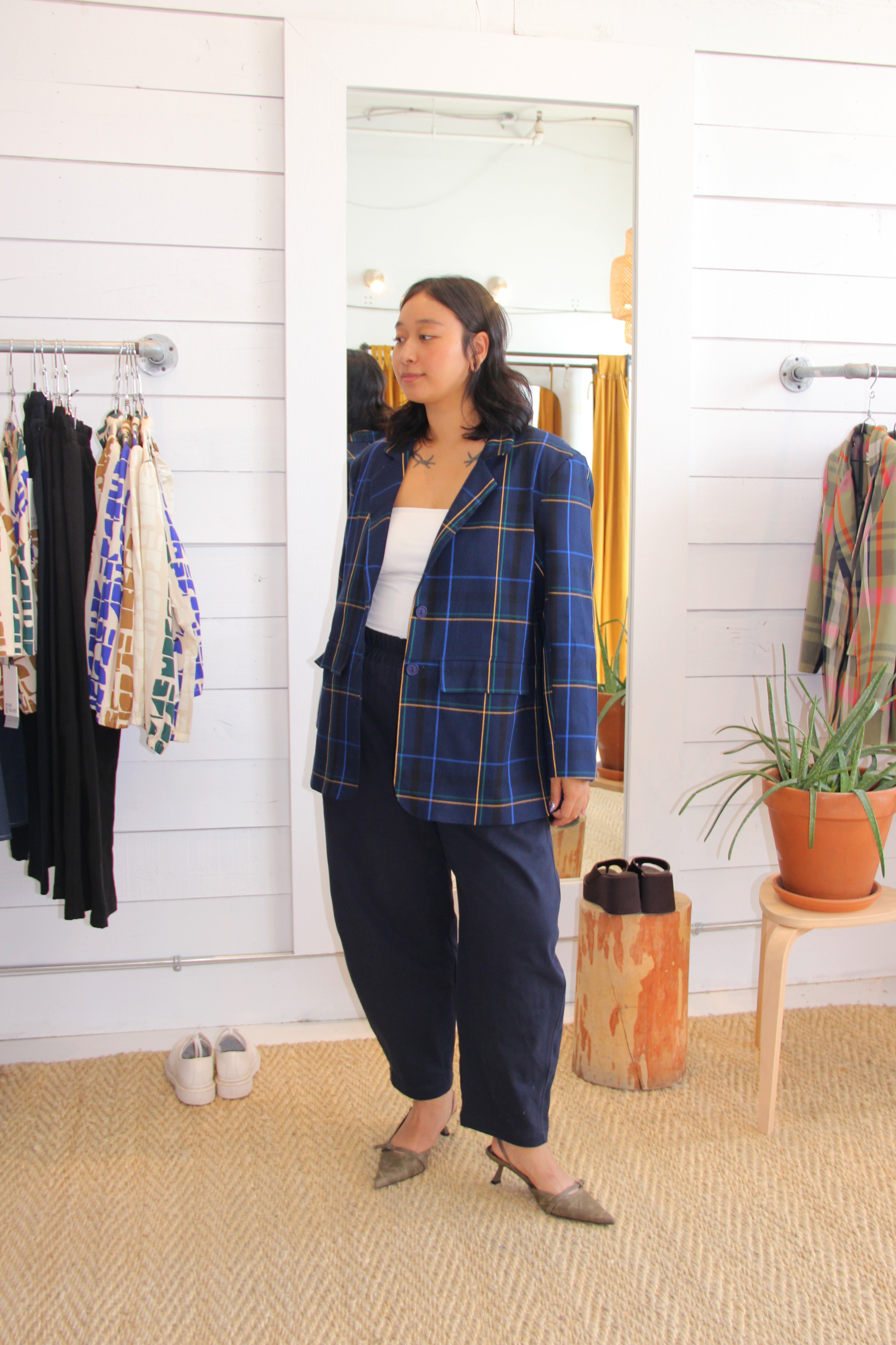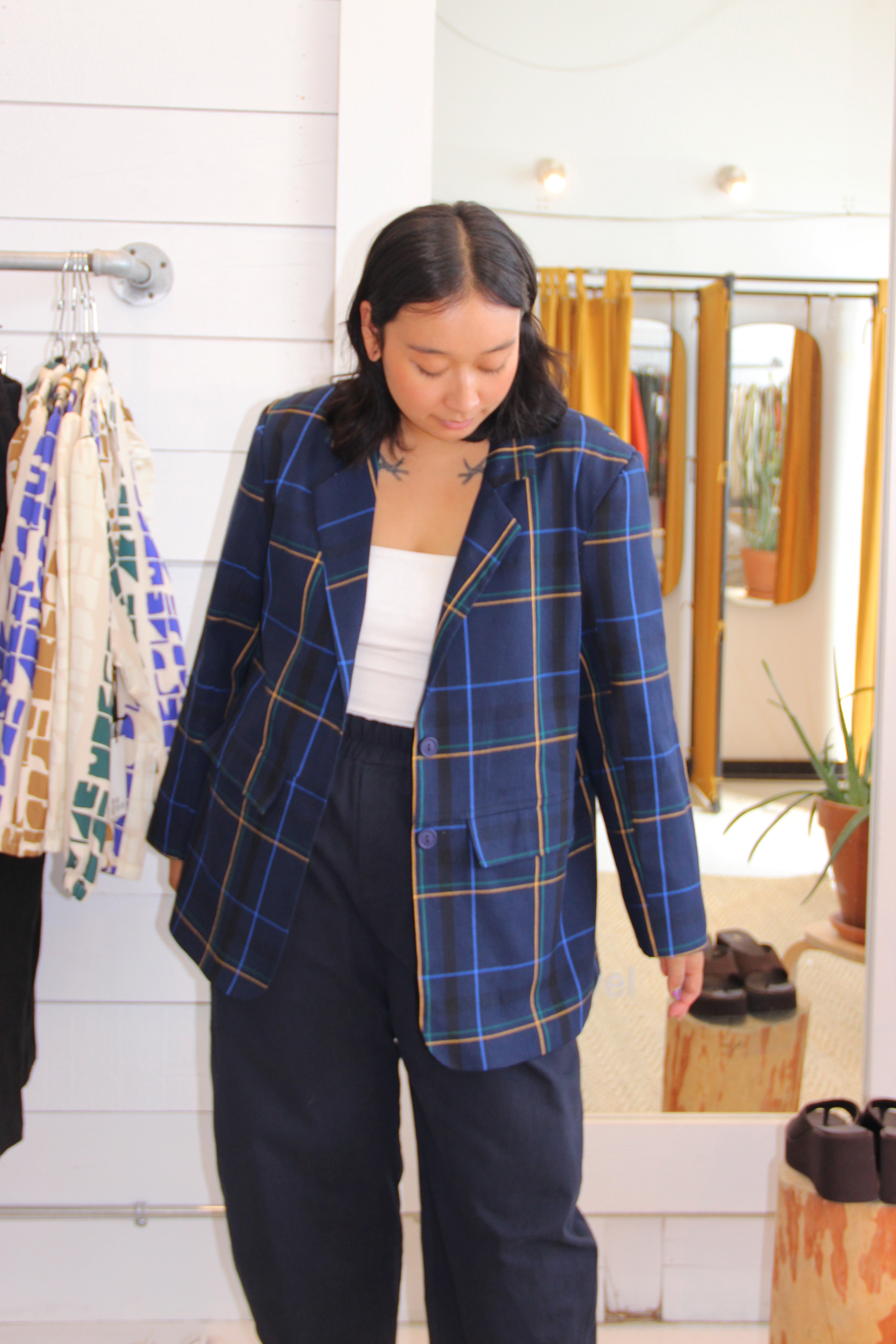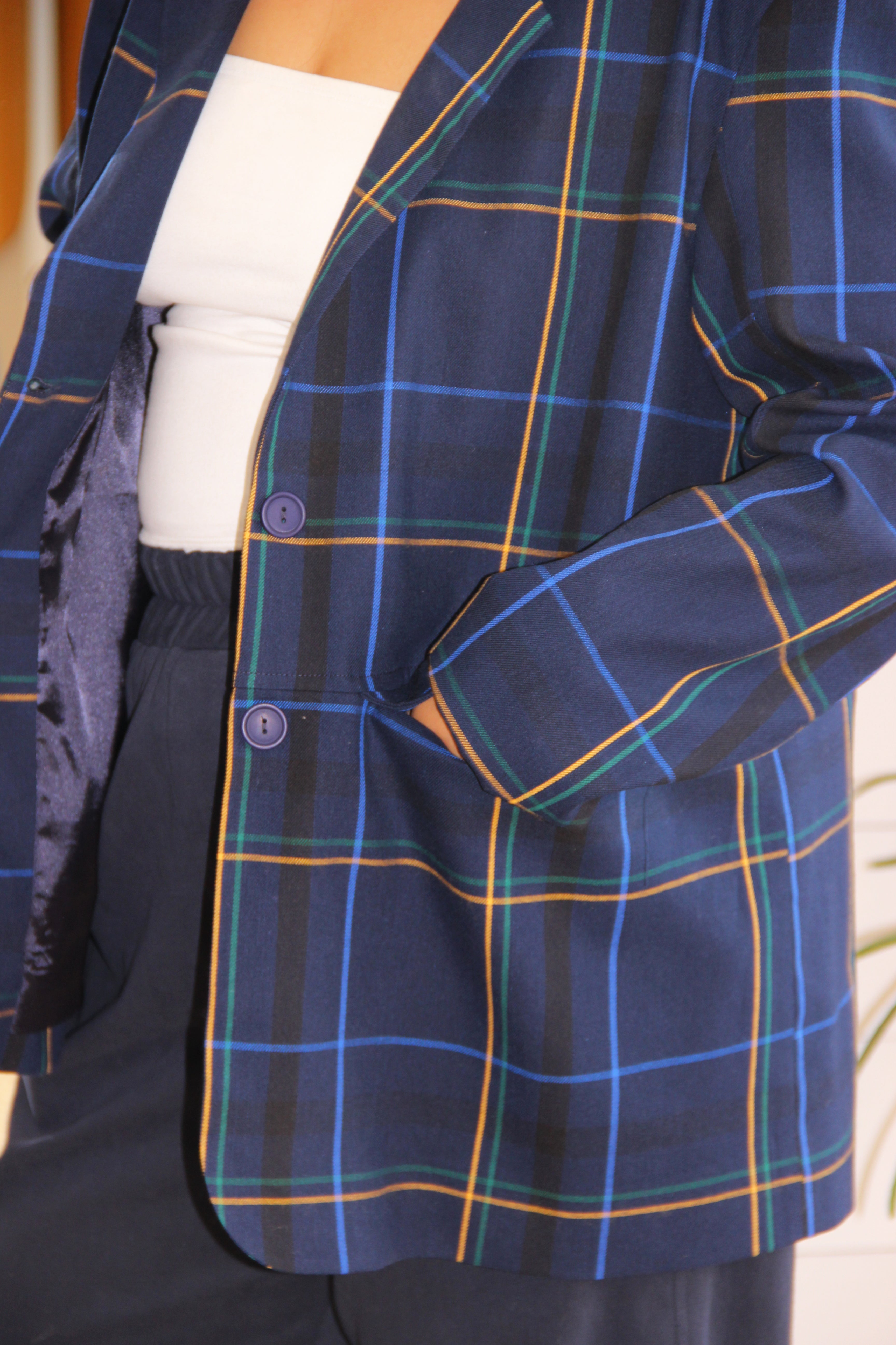 The must-have blazer! If you're a fan of oversized blazers, this one will quickly become one of your must-haves. Structured and tartan, it perfectly combines character and elegance with a touch of uniqueness. Its two patch pockets on the front and satin lining guarantee optimal comfort while enhancing style. A true must-have for a chic and modern look.