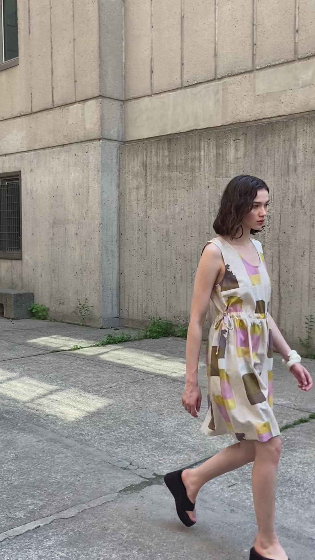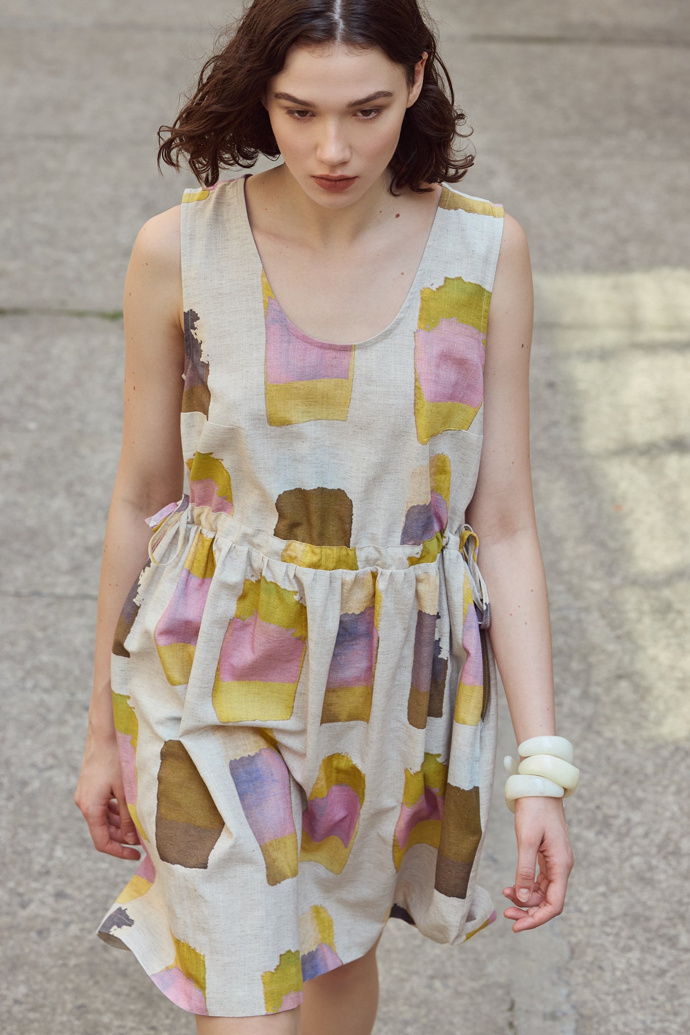 This sleeveless mini dress features an exclusive print designed in our Mile End atelier. Two ties at the waist allow you to cinch the dress and create a pretty pleat that adds volume and movement to the silhouette. Practical and discreet side pockets complete this piece, which is both refined and comfortable.