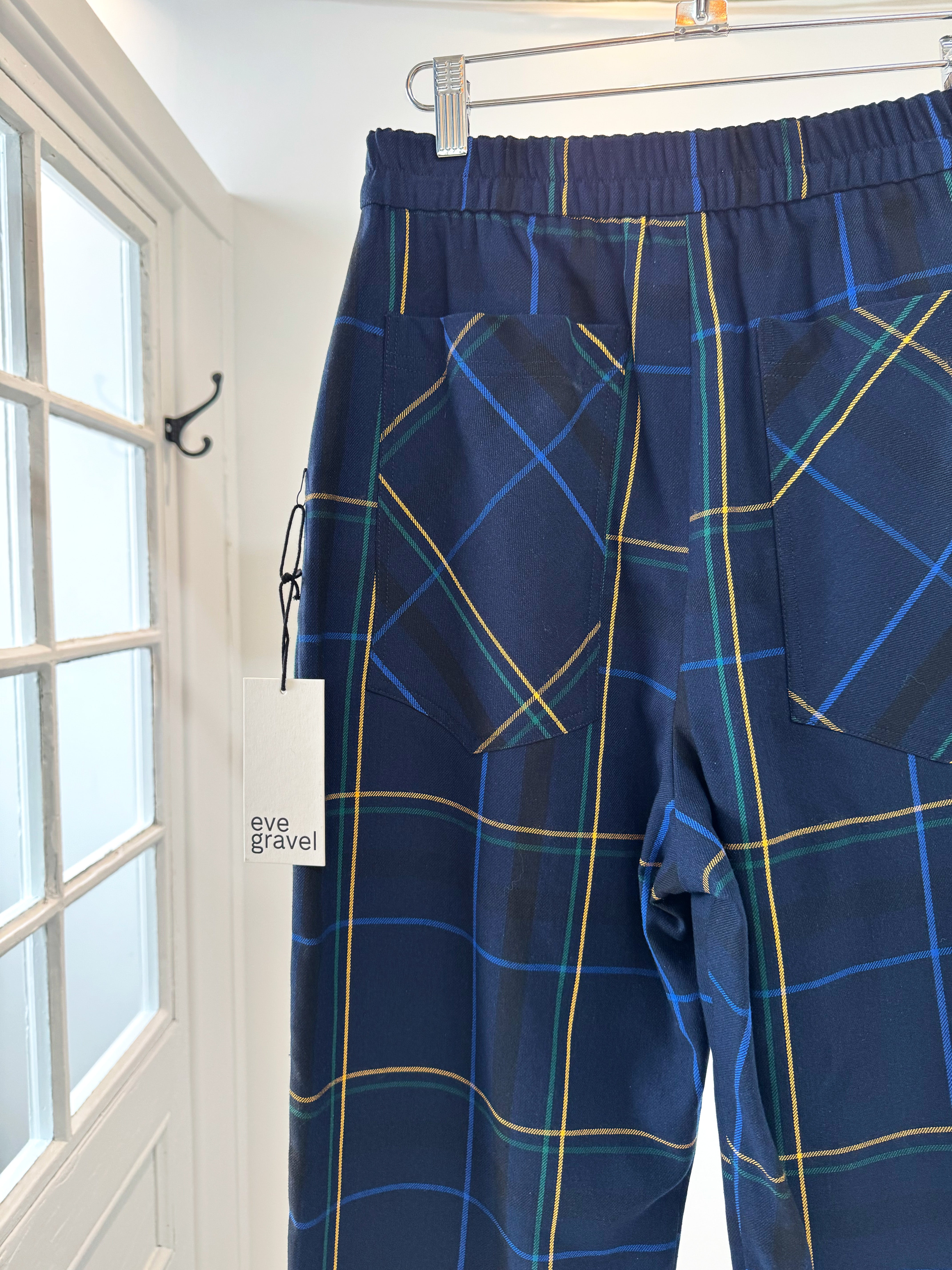 Straight-leg tartan trousers designed with a waistband, a fly, and buttons at the front, as well as elastic at the back for optimal comfort. They are embellished with two patch pockets at the back and two side pockets for a practical and modern touch. For a decidedly sophisticated look, pair them with our RORY tartan jacket. A unique and elegant ensemble by Eve Gravel.